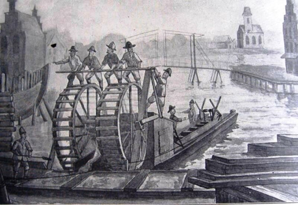 octrooi van Ir. Cornelis Dirckszoon Muys. De modder wordt d.m.v plankjes aan een eindloze ketting (paternoster) omhoog geschoven en bovenaan gestort in een schuin liggende houten goot die naar een opzij liggende baggerschuit voert. De aandrijving bestaat uit twee grote tredraderen waarop elk twee mannen (veelal gedetineerden) lopen en 1 persoon die de diepte van de ladder regelt d.m.v. een kaapstander. Heet daarom ook wel tredmolen
