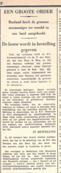 Dutch dredger Batavus sold to the Soviet Union according to the Dutch newspaper Het volksdagblad dated 20 April 1937