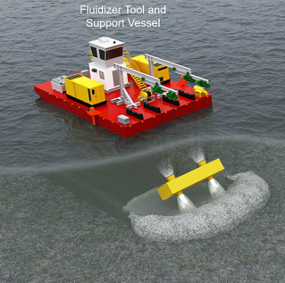 This is one of two vessels of the SES (Sediment Extraction System) developed by Wing Marine for the dredging of sediments.