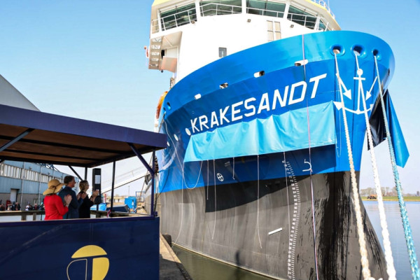 The launch took place on Thursday 24 March. The Krakesandt was christened by Mrs. Sabien Binkhorst.