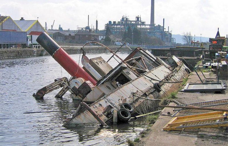 2008 in sunken condition on Manchester Ship Canal at Weston Point Docks MSC.