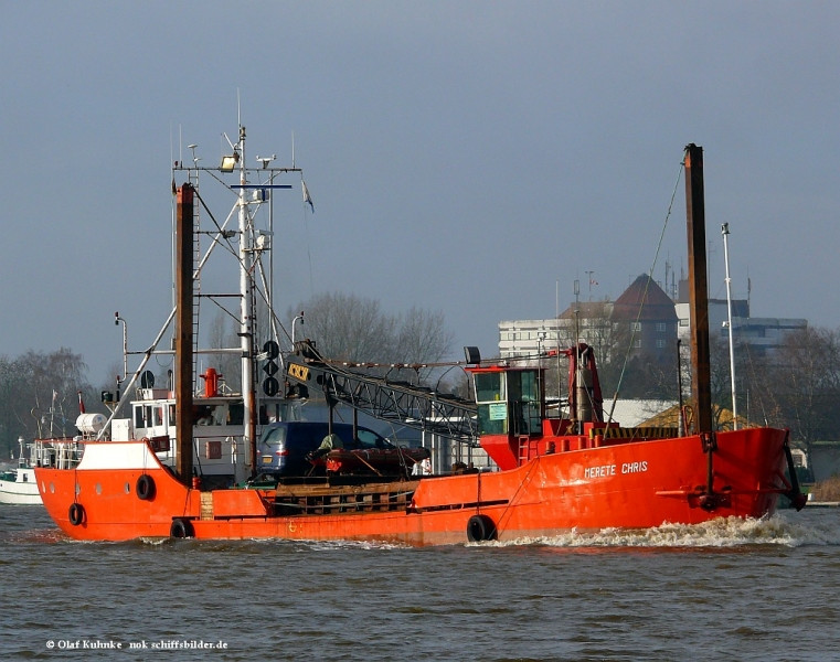 Built in 1966 as general cargo vessel KAMERAD. Converted in1987 into a grab hopper dredger at the Ærøskøbing Skibsværft