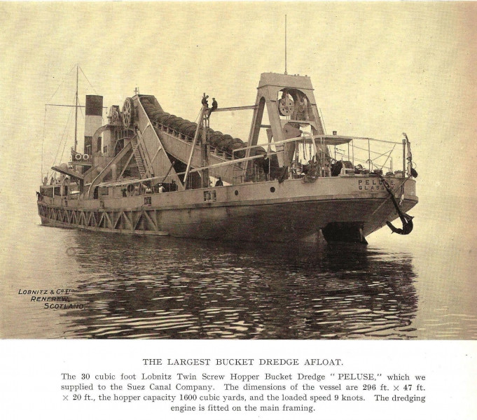 Largest bucket dredger in the world when built. Seagoing - hopper-dredger design, based on PTOLOMEE (Lobnitz Yd 585)Additional dredging equipment engine of 600ihp.