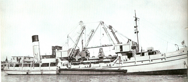 Rebuilt In 1935 by J&K Smit (Er werden 4 grijperkranen en een zelf leegzuig systeem aangebracht.)