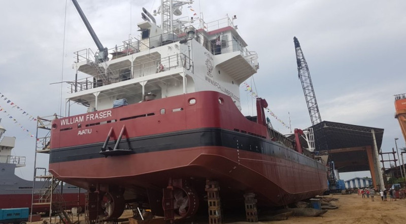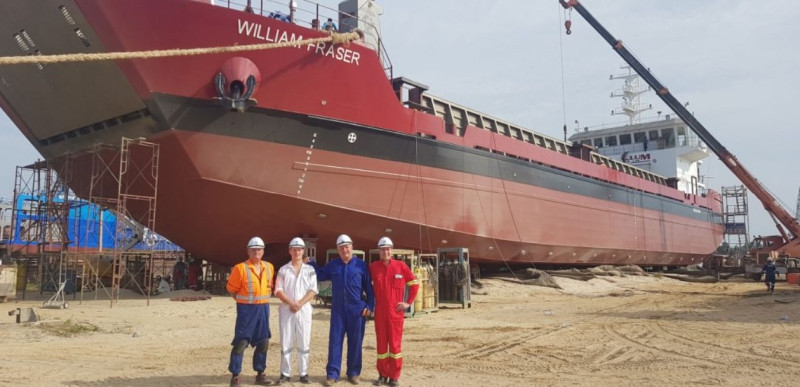 The William Fraser was launched on July 3rd, 2019 in Miri, eastern Malaysia. The newest addition to the McCallum Bros Limited fleet was designed and built by the Ling Family, owners of the Berjaya Dock Yard..The William Fraser is an integral part of our growth and sustainability and corporate social responsibility practices. Measuring 68m x 16m with a DWT of 1500T, she is primarily designed to extract sand and carry aggregates and project cargo. The dredge gear was designed in the Netherlands by Holland Dredge Design. The state of the art, minimal environmental impact dredging gear includes green valves to minimise sediment suspension and an electric driven sand pump.