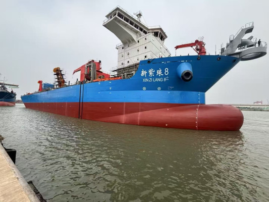 According to ZPMC, this vessel boasts an exceptionally large hold capacity, deep digging capability, high sailing speed, and low operational costs.